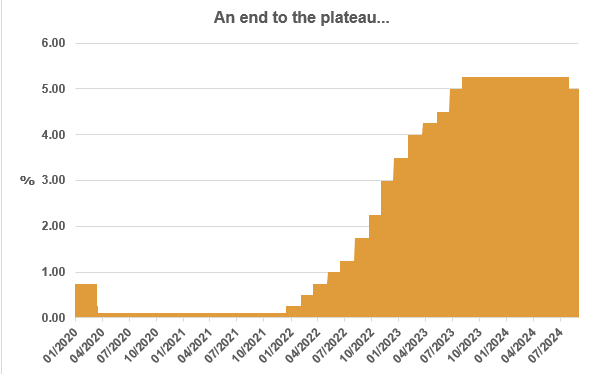 On 1 August, the Bank of England reduced its bank rate by 0.25% to 5.00%, marking the first cut since the onset of the Covid-19 pandemic in March 2020. The decision, made by the Monetary Policy Committee, passed with a narrow 5–4 vote, highlighting differing views. While Governor Andrew Bailey supported the cut, Chief Economist Huw Pill opposed it.