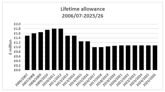 For three tax years from 2018/19 the SLA has been index-linked, but from April 2021 it will be frozen for half a decade at £1,073,100. Had the original £1,500,000 level been index linked, the SLA would now be £2,082,100 – not far short of double the actual level.