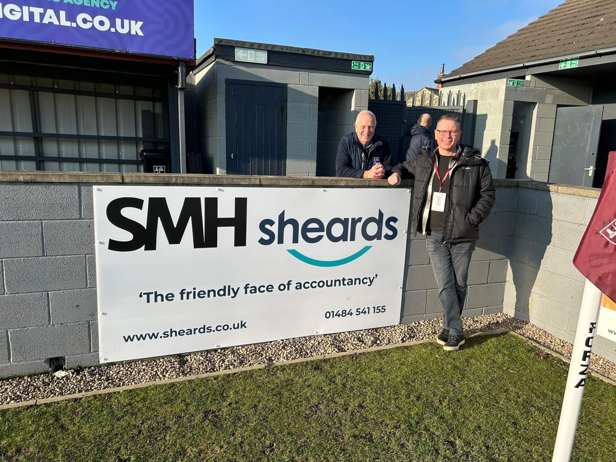 Here is director at SMH Sheards, Kevin Winterburn, proudly stood in front of our board at the Fantastic Media Welfare Ground.