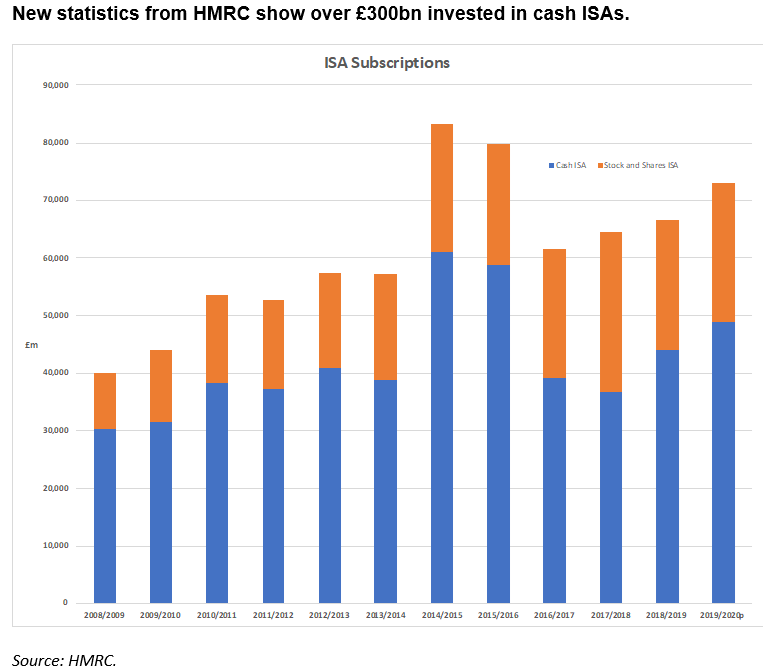New statistics from HMRC show over £300bn invested in cash ISAs.