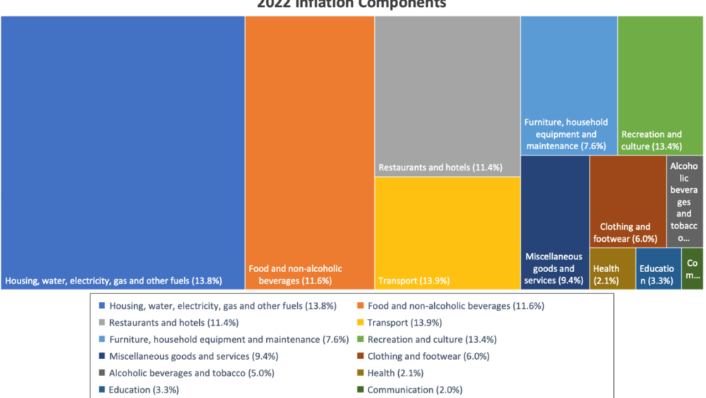 Annual inflation in 2022 was 10.5%, but not all components rose by double digits.