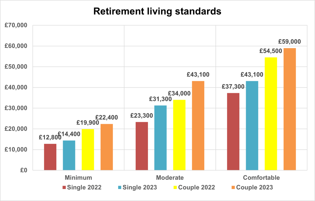 Since 2019, the Pensions and Lifetime Savings Association (PLSA) has been dedicated to determining the cost of retirement for both couples and single retirees. This involves examining three different Retirement Living Standards which can be summarised as: